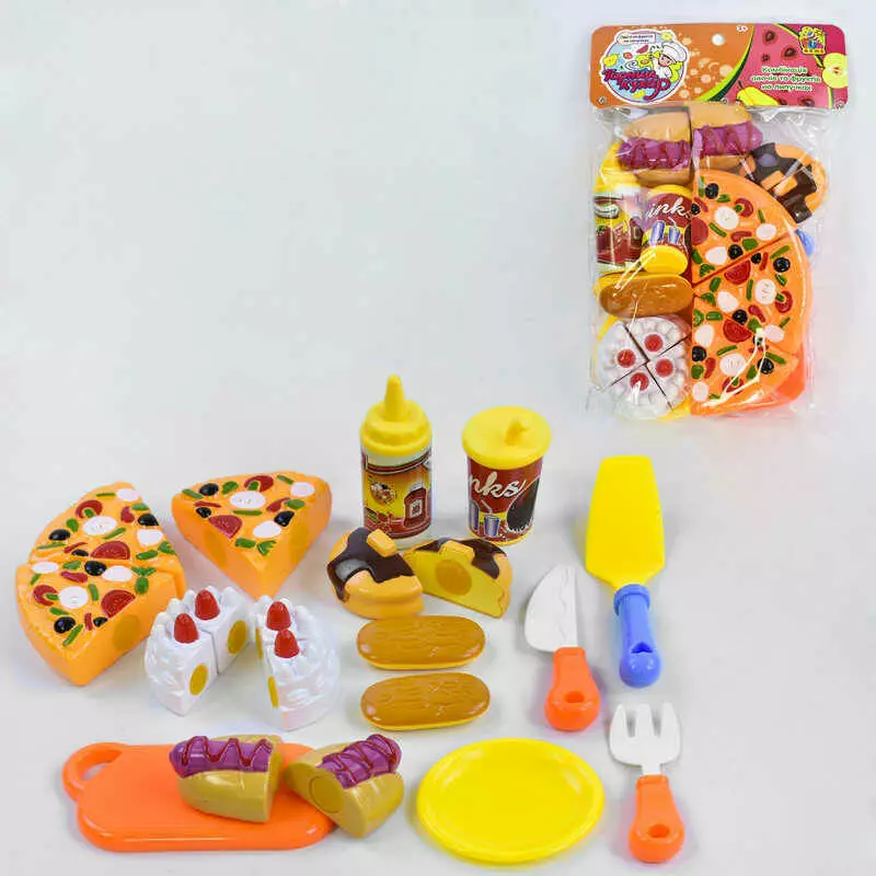 Представляємо вашій увазі набір яскравих пластмасових продуктів від Fun Game! Частини продуктів з'єднані між собою липучками. У комплект з продуктами входить ніж і дощечка, за допомогою яких дитина зможе "розрізати" їх навпіл. У наборі: - продукти, які можна розділити на частини (піца, торт, хот-дог, тістечко, печиво); - посуд (ніж, дощечка, вилка, тарілка, лопатка для торта); - додаткові аксесуари (стаканчик для напоїв, баночка для спецій). Ігровий набір 1029 "Продукти на липучках" дозволить малюкові розвинути дрібну моторику, навчитися навичками роботи з ножем, познайомитися з таким поняттям як частини і ціле.