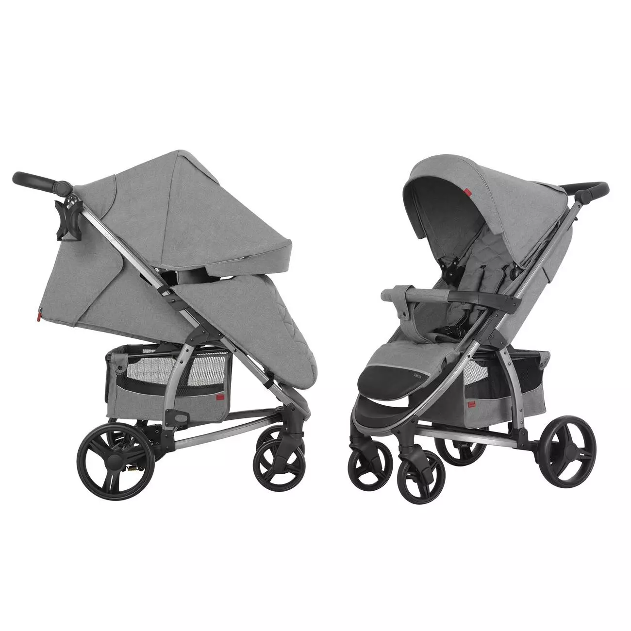 CARRELLO Vista має міцну і стійку конструкцію. За рахунок поворотності її передніх коліс збільшується її маневреність і легкість в управліннi. Просторе сидіння може легко перетворюватися в спальне місце, для цього потрiбно лише скористатися передбаченим регулюванням, яке змінює положення спинки і підніжки аж до горизонтального. В якості системи безпеки в ній використовуються п'ятиточкові ремені для надійної фіксації дитини, зйомний захисний бампер та педаль-гальмо на задніх колесах.