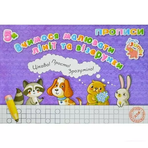 Ви хочете, щоб Ваша дитина писала правильно, красиво і легко? Перед Вами — прописи, спрямовані на розвиток початкових навичок і правильну постановку руки. Щоденні нетривалі (20–25 хв) заняття нададуть допомогу Вашій дитині при опануванні письма. Пам'ятайте! Розвиток дрібної моторики стимулює розвиток інтелектуальних здібностей в цілому! Прописи допоможуть дітям навчитися орієнтуватися на аркуші, завдання розвинуть зорове сприйняття, логічне мислення. А також допоможуть дитині навчитися писати і підготуватися до школи.