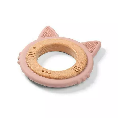 Прорізувач для зубів дерев'янно-силіконовий "Кошеня" (Рожевий)
