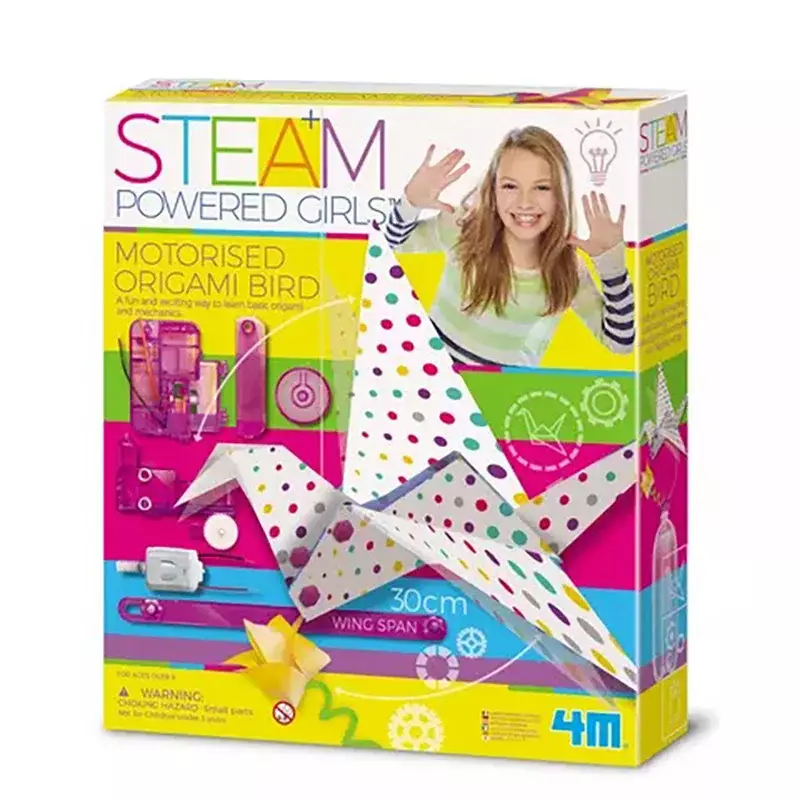4M Пташка-техноорігамі - це навчальний набір для створення моторизованої пташки-орігамі. У процесі складання дитина познайомиться з мистецтвом орігамі та дізнається про принцип роботи електродвигуна. Зроблено в Китаї. Що таке STEAM? STEAM - це сучасний підхід до навчання, який інтегрує природничі науки (Science), технології (Technology), технічну творчість (Engineering), мистецтво (Art) та математику (Mathematics). Це допомагає дітям краще розуміти, що поєднує всі ці напрями і як вони застосовуються у повсякденному житті. STEAM заохочує дітей мислити математично, досліджувати наукові явища, і водночас залишатися креативними та винахідливими. Як користуватися Пташку необхідно скласти з паперу для орігамі, дотримуючись інструкцій. Крім пташки, з паперу вам також доведеться скласти тюльпан. А коробка передач та гвинтики знадобляться, щоб створити електродвигун, відповідальний за рух птиці. Саме завдяки електродвигуну пташка зможе розправляти крила. У складеному вигляді конструкцію потрібно прикріпити до пластикової пляшки (не входить у набір) або підвісити до стелі. Посібник користувача містить цікаві факти про мистецтво орігамі та пояснення, як саме електродвигун змушує птаха рухатися. Набір 4M Пташка-техноорігамі навчає основ орігамі, конструювання та механіки. Крім того, складання пташки-орігамі сприяє розвитку дрібної моторики, логіки та уважності. Кому подарувати Серія конструкторів 4M STEAM Powered Girls створена для сміливих дівчаток, які прагнуть вивчити щось нове та розважитися! Набір Пташка-техноорігамі призначений для дослідниць віком від 8 років. Втім, складатиме його краще під наглядом дорослих. Для роботи з дрібними деталями, що входять до комплекту набору, необхідно бути уважним та чітко дотримуватися інструкцій. Про виробника Науково-пізнавальні набори 4М - це простий та цікавий спосіб вивчення різних фізичних явищ, принципів конструювання та застосування альтернативних джерел енергії. Найкраще такі набори підходять дітям шкільного віку, адже саме в цей час вони дуже допитливі і прагнуть досліджувати весь світ у найкоротші терміни. В асортименті виробника ви знайдете цікаві набори для дослідження природних явищ, проведення експериментів, конструювання роботів та механізмів тощо. Характеристики Габарити 235 ? 275 ? 55 мм Вік від 8 років Комплектація STEAM-набір 4M Пташка-техноорігамі: Корпус коробки передач - 1 шт. Кришка батарейного відсіку – 1 шт. Клема-фіксатор у вигляді квітки – 4 шт. Затискний ковпачок у вигляді квітки – 4 шт. Гвинт – 1 шт. Гвинт із плоскою головкою - 2 шт. Пробка від пляшки – 1 шт. Нитка – 1 шт. Толкач - 1 шт. Клейка стрічка – 2 шт. Полістирольна підкладка – 1 шт. Синельний дріт – 1 шт. Лекало – 1 шт. Підставка із дроту - 1 шт. Папір для орігамі великий - 2 шт. Папір для орігамі маленький - 1 шт. Інструкція – 1 шт.