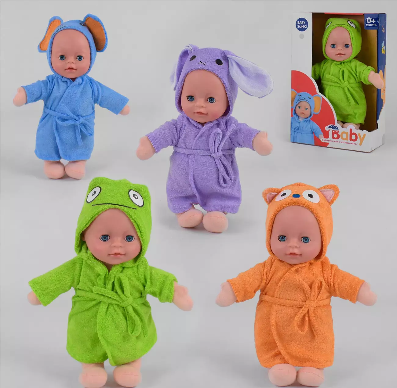 М'якотілий пупс 1829-1-2-3-4 - це чудовий подарунок, який обов'язково сподобається кожній дівчинці. Абсолютно нова модель м'якотілого пупсика, одягнена в прекрасний, м'який комбінезон, який пошитий за образом тварини. У серію увійшло 4 пупси: жабка, слоник, зайчик і білочка. Пупс зріст – 30 см. У нього повністю м'яке тіло, тільки голова виконана з високоякісного первинного пластику. Пупсик може говорити тато-мама, сміється, плакати, кашляти та видавати інші, реалістичні звуки малюків.