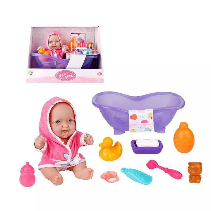 Пупс 718 A (18/2) ванна, рушник, засоби для купання, пискавка, висота 24 см, в коробці