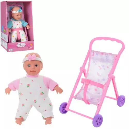 Пупс DEFA 5088 м'яконабивний, коляска, 2 види, кор., 17-28-14 см.