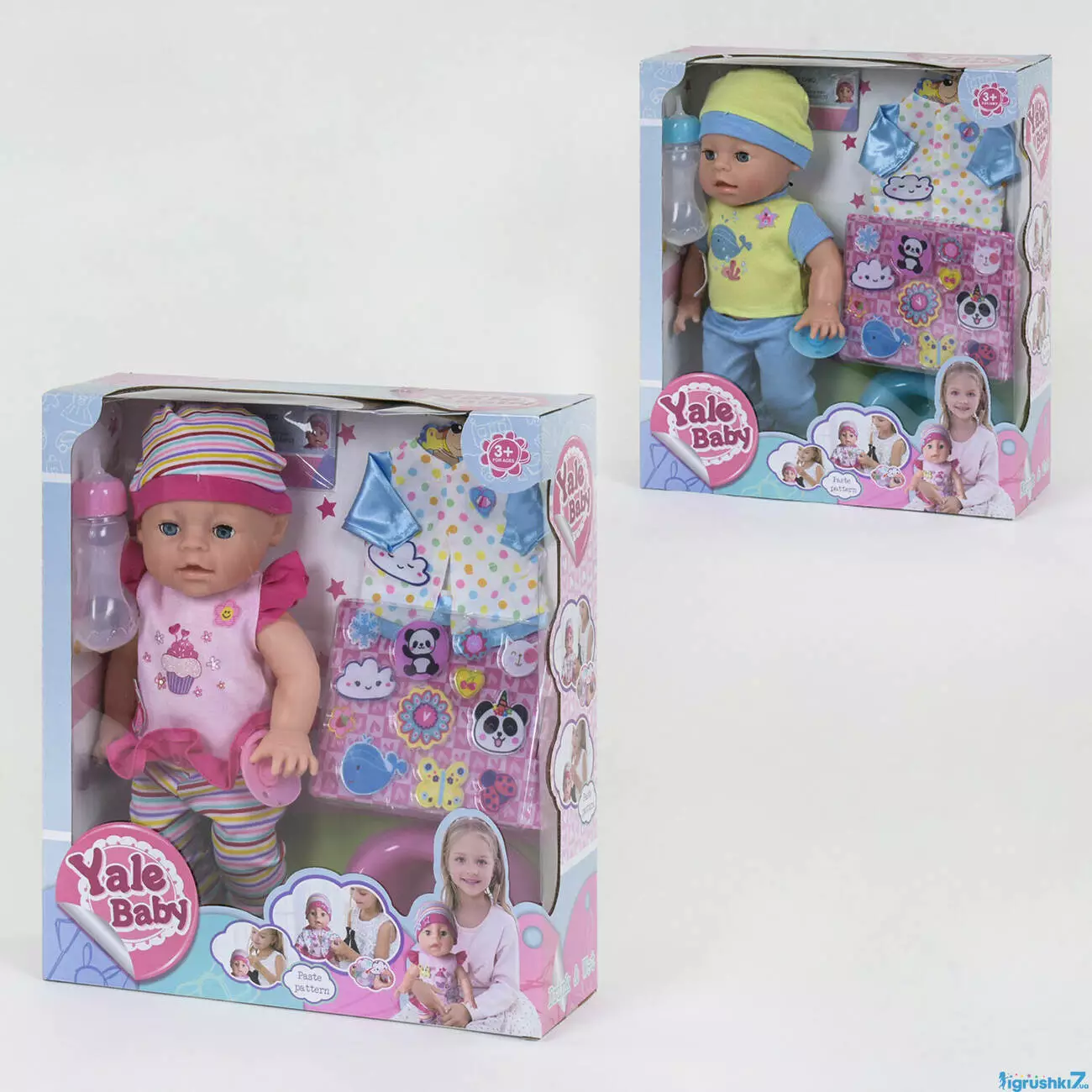 Пупс функціональний YL 1722 D (12) 2 види, 5 функцій, з набором липучок, з аксесуарами, в коробці