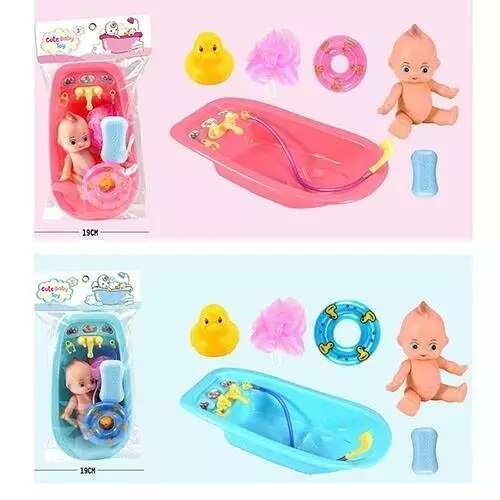 Пупс H334-4 ванночка, надувне коло, мочалка, 2 кольори, кул., 36-19-6 см.
