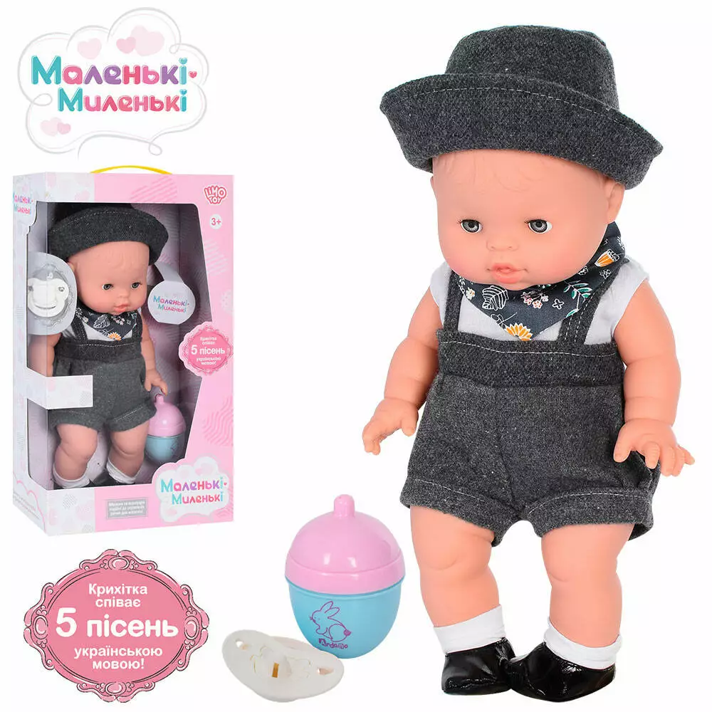 Пупс M 4705 I UA соска, пляшечка, 5 шт., муз.-укр.пісня, бат.(таб.), кор., 22-36-10,5см.