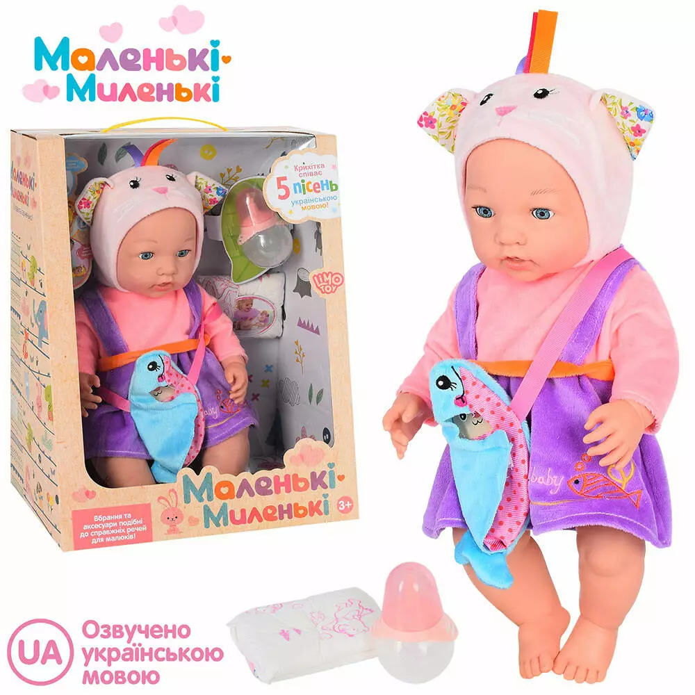 Пупс M 4723 I UA п'є-пісяє, пляшечка, підгузник, 5 пісень, муз. (укр.), бат.-таб., кор., 30-38-21см.