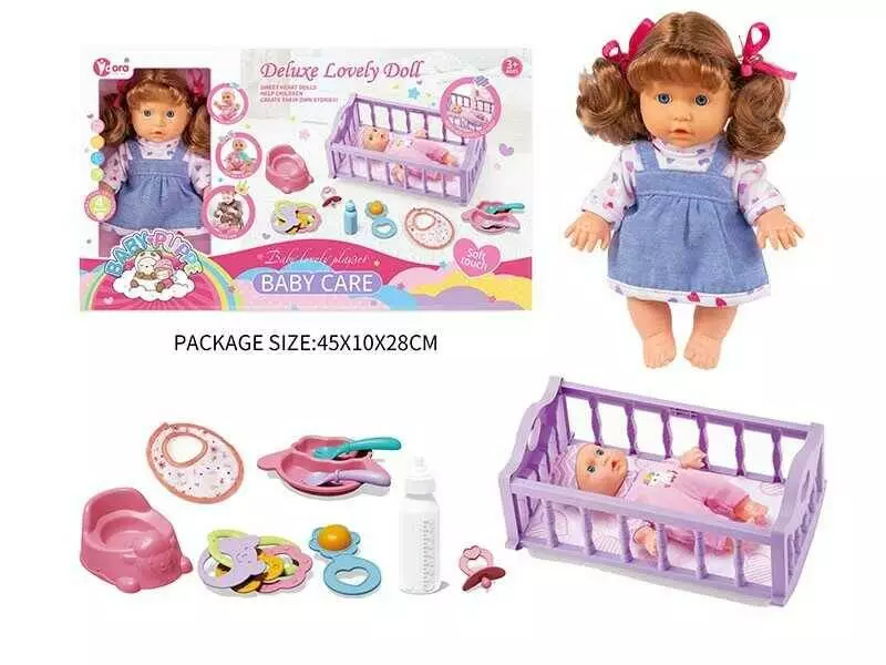 Пупс WZB 667-9 (30) ліжечко-гойдалка, горщик, посуд, пляшечка, нагрудник, пустушка, брязкальце, музичний чіп, висота 22 см, в коробці