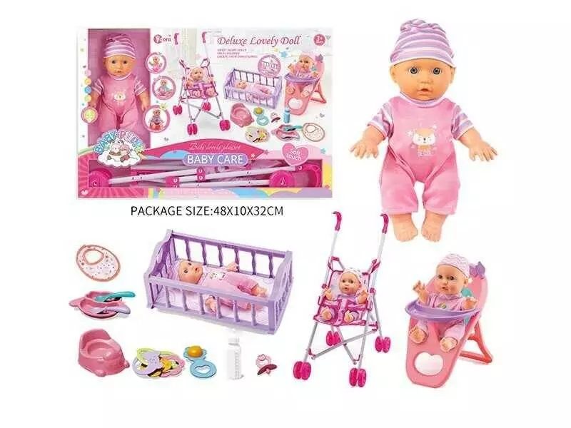 Пупс WZB 669-3 (24) ліжечко-гойдалка, візочок, стільчик для годування, аксесуари, музичний чіп, висота 22 см, в коробці