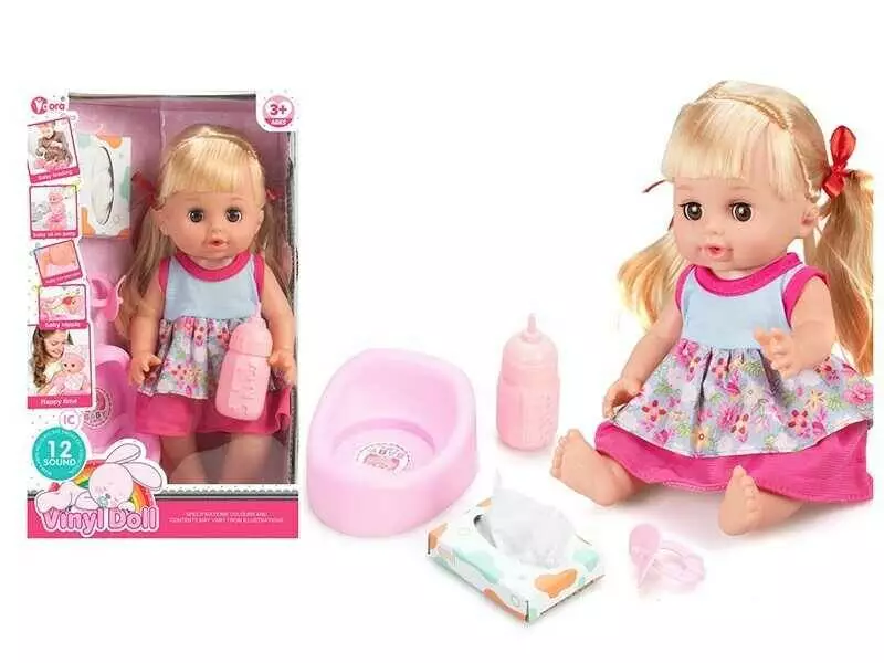Пупс WZB 8809-8 (48) 30 см, 12 реплік, п’є, закриває очі, ходить до вбиральні, пляшечка, горщик, пустушка, в коробці
