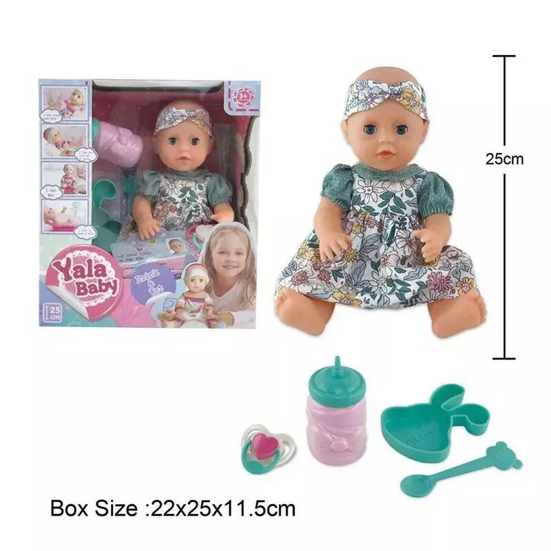 Пупс YL 2208 L (48) висота 25 см, пляшечка, пустушка, пляшечка, тарілочка, ложка, закриваються очі, п’є, ходить на горщик, в коробці