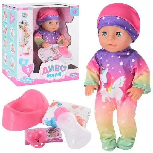 Пупс YL1928G-DM-S-UA горщик, пляшечка, підгузник, соска, п'є-пісяє, кор., 26,5-29-14,5 см.