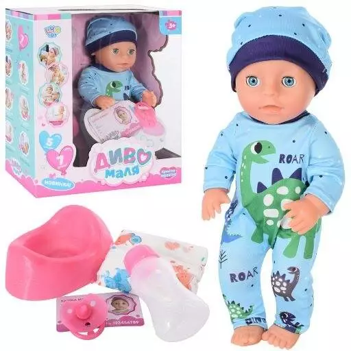 Пупс YL1928K-DM-S-UA горщик, пляшечка, підгузник, соска, п'є-пісяє, кор., 26,5-29-14,5 см.