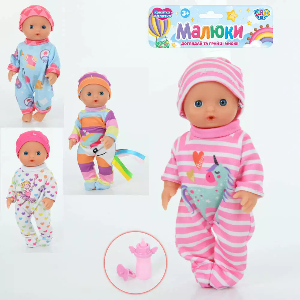 Пупс YL2317H-C п'є-пісяє, соска, пляшка, 4 види, кул., 20-27-5 см.