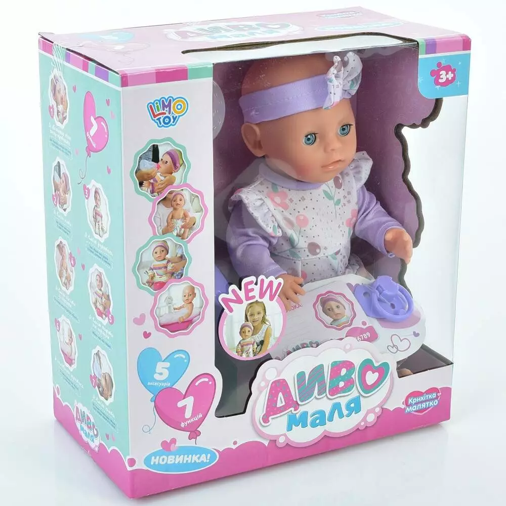Пупс YL2330A-D-DM-UA п'є-пісяє, горщик, пляшка, соска, підгузки, кор., 29,5-26,5-14,5 см.