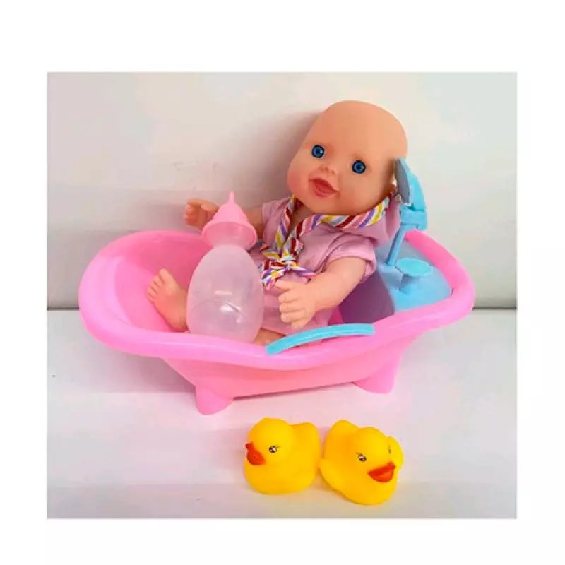 Пупс ZY17-5D ванна, 2 качки, пляшечка, сітка, 25-13-13 см.