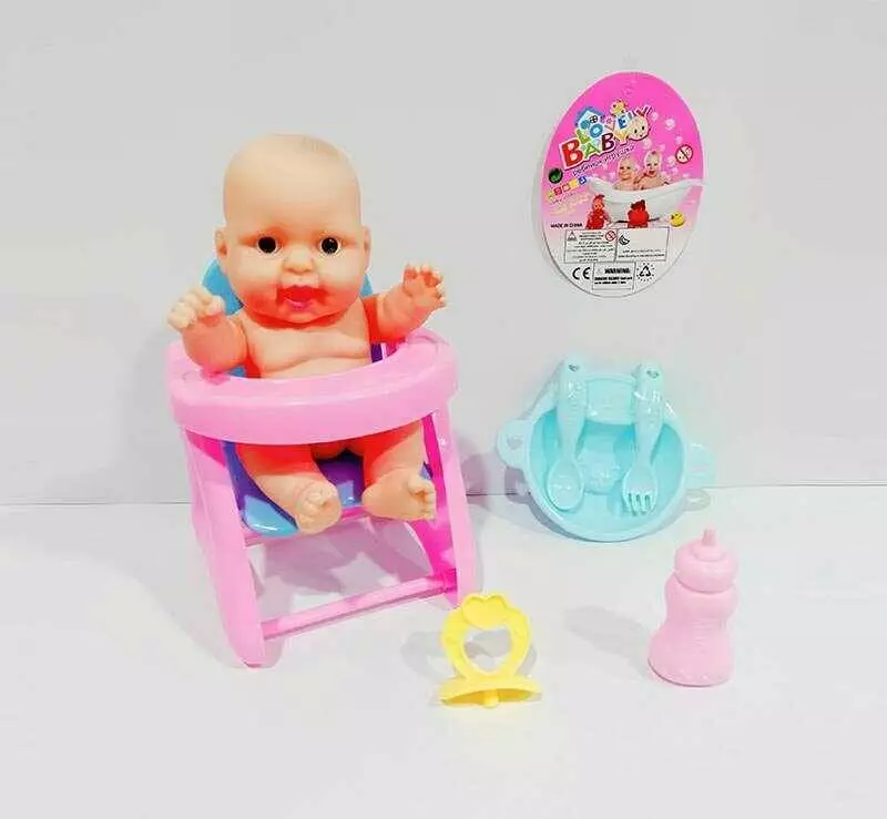 Пупсик з аксесуарами LD 6402 D 61E (96/2) висота 16 см, стільчик, посуд, в сітці
