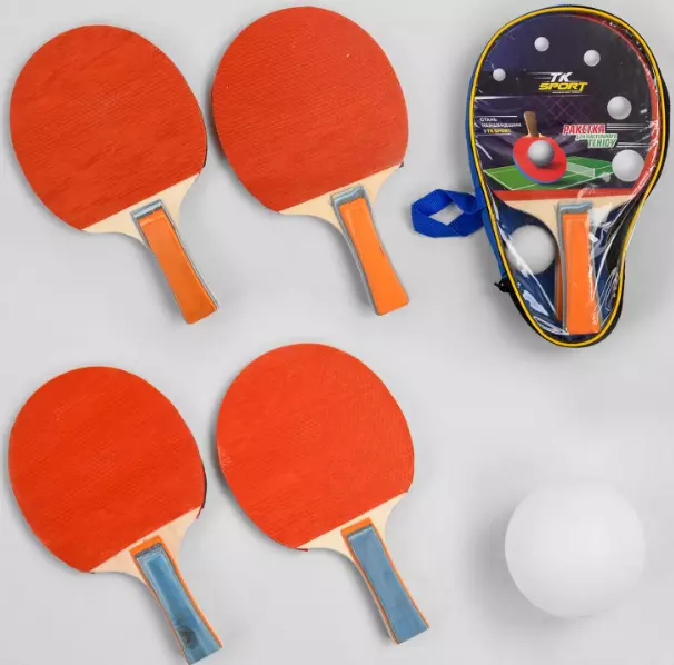 Ракетка C 44865 для пінг-понгу (50) "TK Sport" 2 види, 2шт + 1 кулька, в чохлі