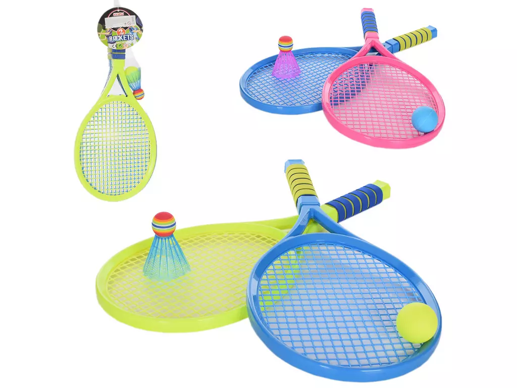 Ракетка MR 0656 дитяча 2шт., розмір 51-23,5см., м'ячик, воланчик, 2 кольори, сітка, 57-23,5-6см.