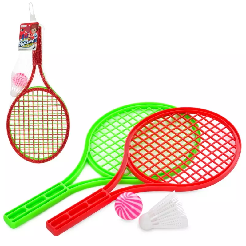Ракетка MR 0899 дитяча 2 шт., розмір 39-18 см., м'ячик, воланчик, сітка, 39-18-6 см.