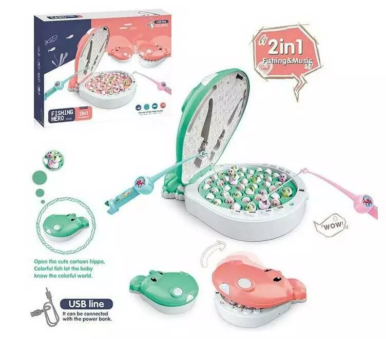 Риболовля 156-5 С (18/2) ""Бегемот"", магнітна, 44 рибки, 2 вудки, USB-кабель, у коробці