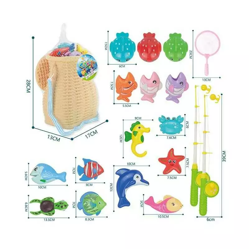 Риболовля 688 B-203 (48/2) кошик, 2 вудочки з тріскачками, 15 фігурок з магнітами та кільцями, сачок, в сітці