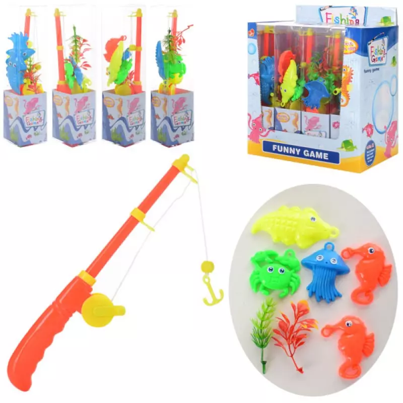 Іграшка Рибалка (упаковка 12 шт) ЦІНА ЗА 1 ШТУКУ В УПАКОВЦІ. У наборі вудка з гачком, морські жителі 5шт. Іграшка розвиває спритність та координацію рухів. Матеріал пластик.