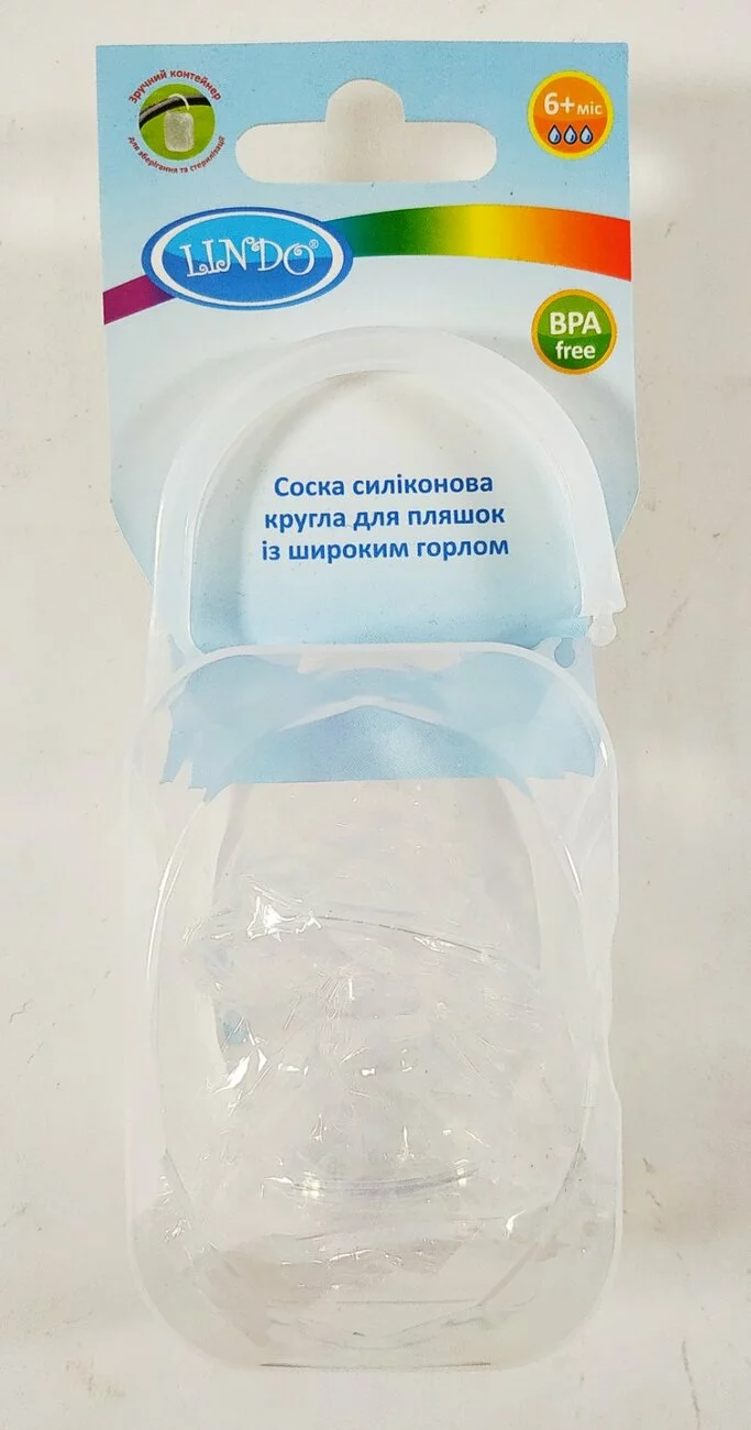 Соска силіконова кругла для широкої пляшки. 1 штука в поліетиленовій упаковці. Матеріал: силікон Вона м'яка, досить міцна і абсолютно безпечна для малюка. Відповідає вимогам Американської Комісії з Питань Безпеки Товарів для Споживачів та Стандартів Європейського Союзу (EN14350). Не містить бісфенолу А (Bisphenol-A, BPA) і фталати (Phtalates)! Товар має висновок державної санітарно-епідеміологічної експертизи і рекомендований до застосування. Інструкція по використанню: Перед застосуванням простерилізувати в спеціальному розчині для стерилізації дитячих пляшечок або шляхом парової стерилізації або кип'ятіння протягом хвилини. Соску потрібно завжди мити до і після використання в теплій воді з додаванням нейтральних миючих засобів (дитячого мила та ін.), Потім необхідно ретельно прополоскати чистою водою. Зберігайте соски в сухому контейнері, не залишайте на сонці або біля джерела тепла. Попередження: Перевіряйте соску кожен раз до і після використання і замініть її в разі зносу, пошкодження або прокусування. Ніколи не використовуйте соску для годування в якості пустушки, або для того, щоб заспокоїти дитину. Тривале і постійне смоктання рідини може привести до псування зубів. Завжди перевіряйте температуру їжі перед годуванням. Чи не змочується соску в солодких рідинах, це може привести до псування зубів, навіть якщо вони ще не з'явилися. Використовуйте тільки під наглядом дорослих. Зберігайте, для консультацій в майбутньому.