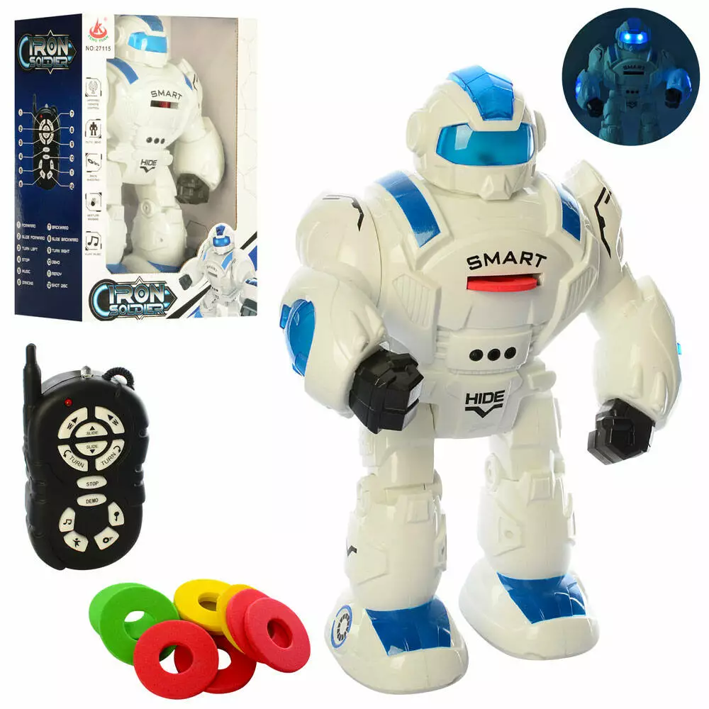 Робот 27115 дист. керув., ходить, їздить, стріляє дисками, муз., світло, бат., кор., 26-36-14 см.