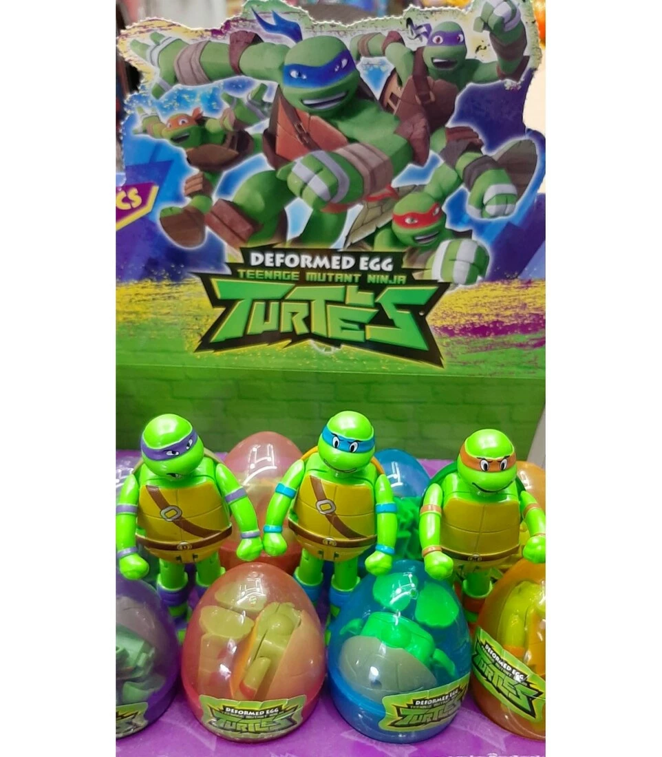 Дитячі іграшки зроблені у вигляді героїв фільму і коміксів, як те, Леонардо, Рафаель, Донателло, Мікеланджело. Робот завдяки безлічі шарнірних кріплень може складатися в яйце трансформуючись у Ninja Turtles. Довжина робота трансформера Черепашки Нінзя становить 13 см, а ширина 6 см.
