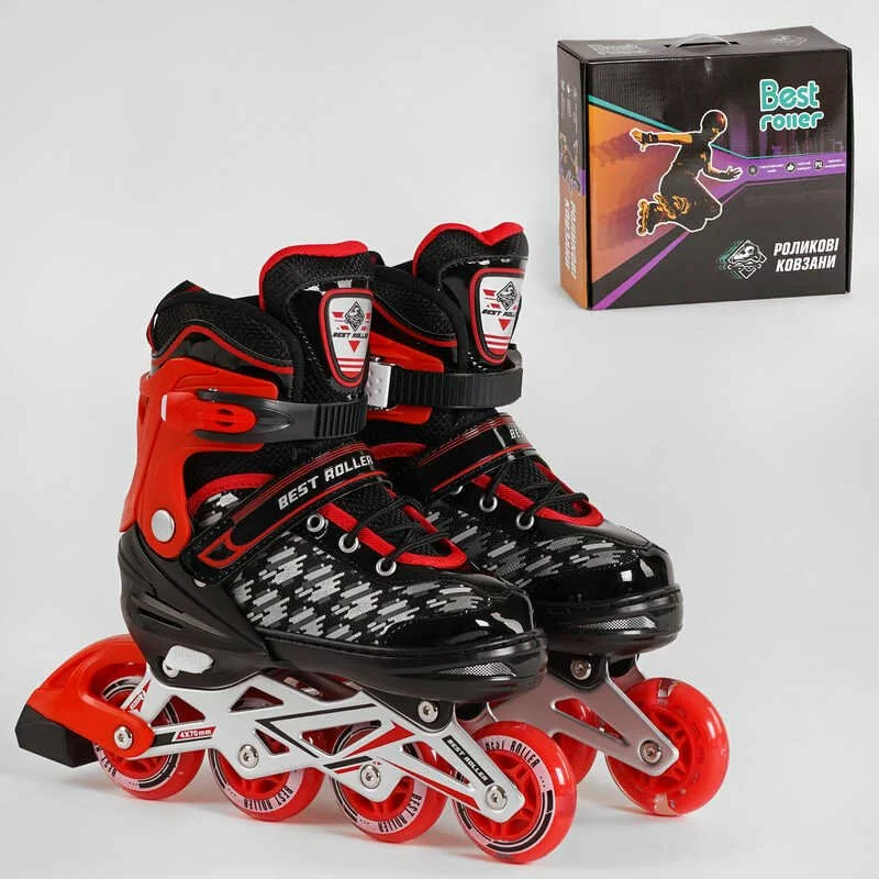 Ролики 62302-М Best Roller /розмір 35-38/ (6) ЧЕРВОНІ, колеса PU, ПЕРЕДНЄ КОЛЕСО СВІТЛО, d коліс – 6.5 см, в коробці