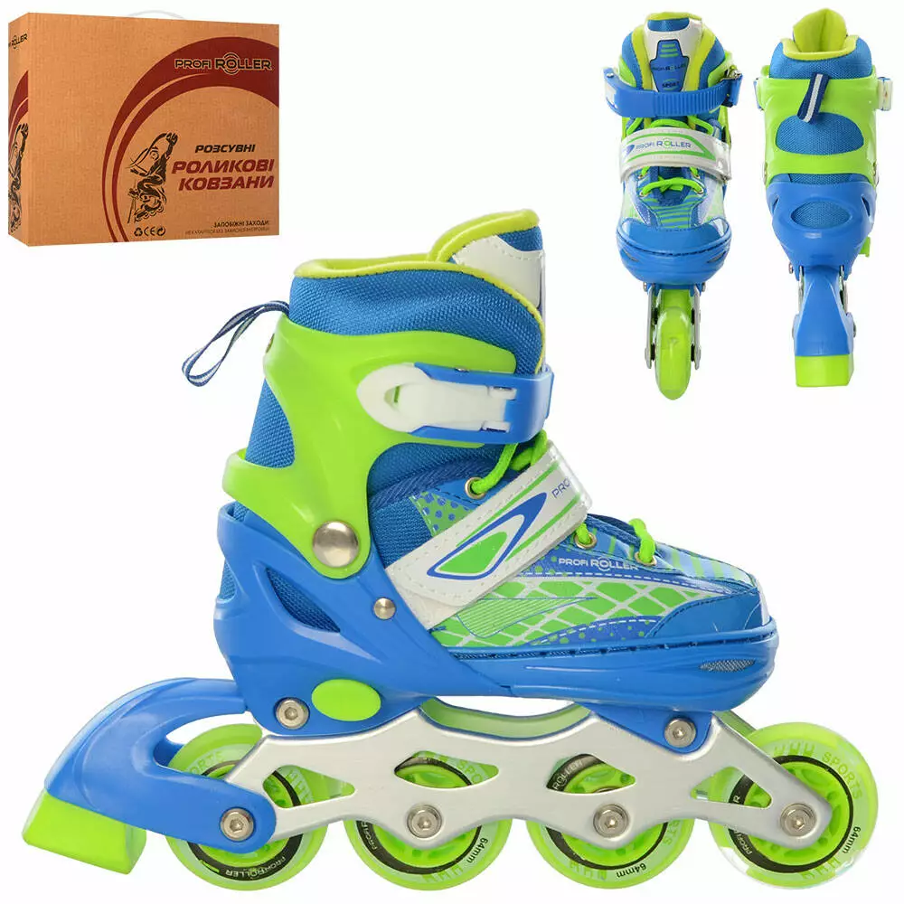 Ролики A 4140-S-BL(31-34) розсув., шнурівка+бакля, ал.рама, кол.ПУ64мм, 1світло, синьо-зелений,кор.