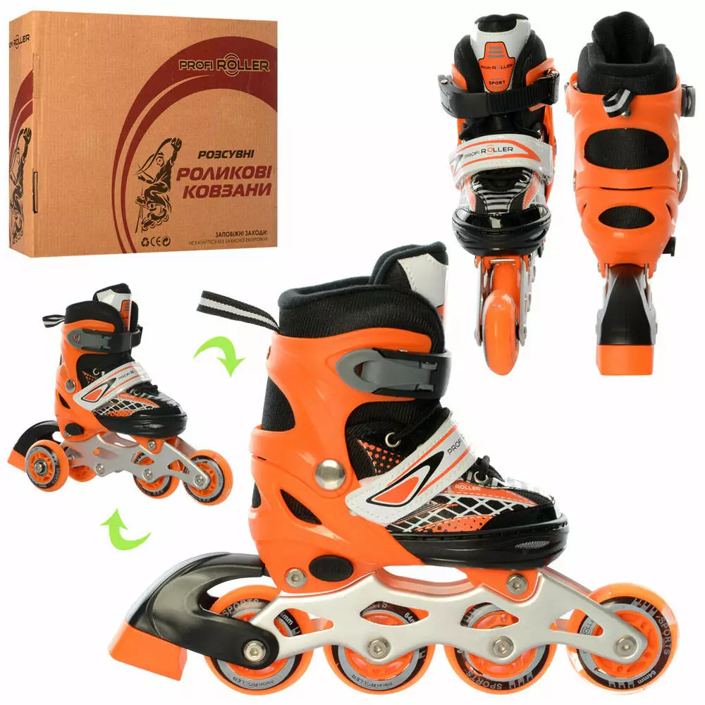 Ролики A 4140-XS-OR(27-30) розсув., шнур.+бакля, ал.рама, кол.ПУ64мм,1світло,комбо,помаранчевий,кор.