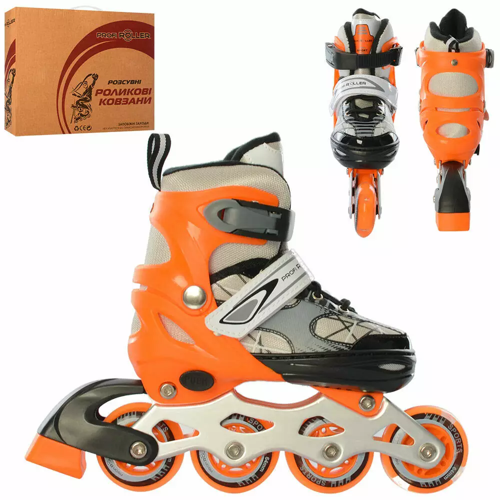 Ролики A 4141-S-OR(31-34) розсув., шнур+бакля,ал.рама,колПУ64мм, 11світло, помаранчевий., кор.