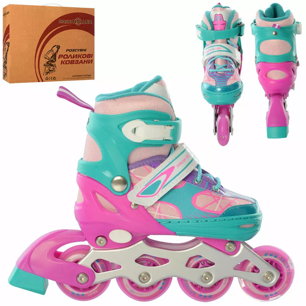 Ролики A 4141-S-V(31-34) розсув., шнур+бакля, ал.рама, колПУ64мм, 11світло, фіол-бірюз, кор.