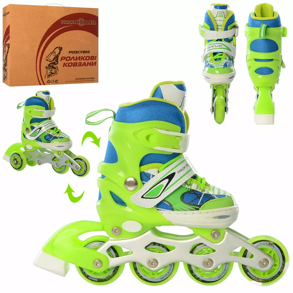 Ролики A 4141-XS-GR(27-30) розсув., шнур.+бакля, ал.рама, кол.ПУ64мм, 1світло, комбо, зелений, кор.