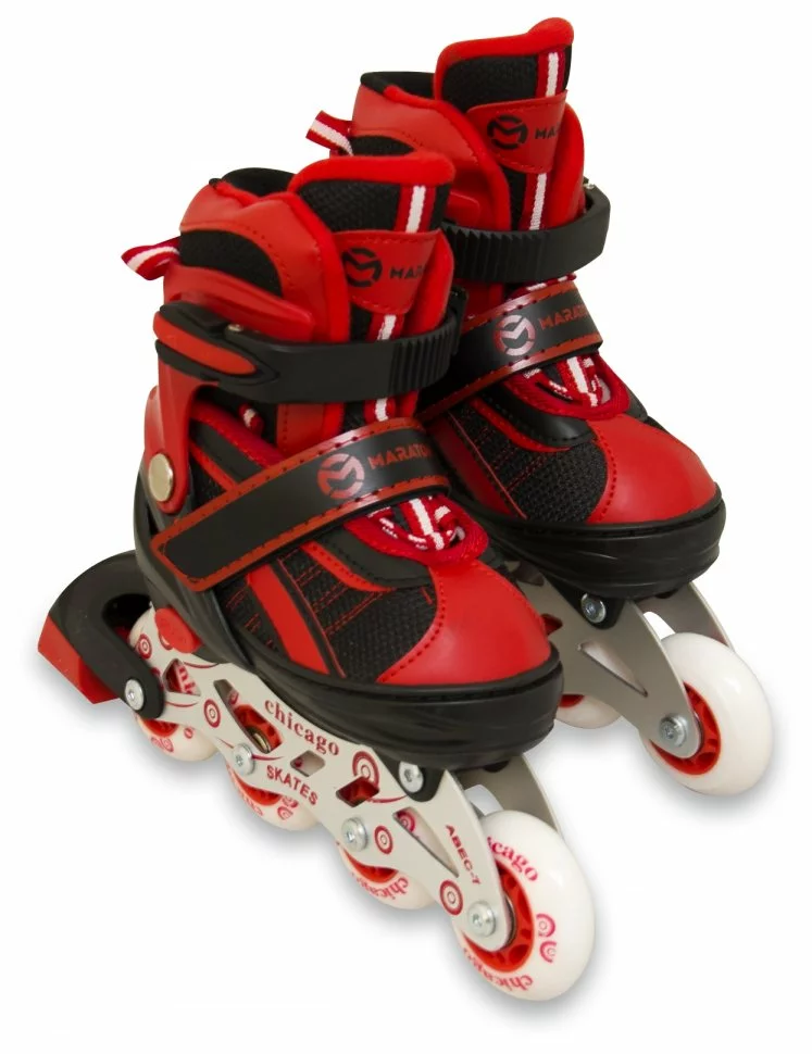 Черевик: м'який, зі шкірозамінника з нубуком і сітчастим матеріалом. Високий підйом, твердий носок. Нейлонова оболонка, ТРЕ манжета. Рама: алюміній (міцна і легка), поліпшена бічна підтримка ноги. Жорсткі поліуретанові колеса - тихі при катанні. Передні колеса світяться. Надійні і швидкісні карбонові підшипники. Ширина коліс: 24 мм Фіксація ноги: бакля, шнурівка, липучка і п'ятковий ремінь. Ножні гальма на правому черевику.
