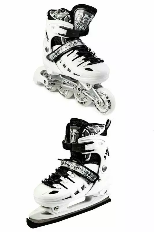 <p><strong>Ролики-коньки Scale </strong>Sports– модель, сочетающая в себе 2 функции: ролики и коньки. В комплектации к роликам идут лезвия для катания на льду. Для превращения роликов в коньки, нужно при помощи специальных ключей, имеющихся в комплектации, открутить винты, и поменять насадку (установить лезвия для катания на льду). <strong>Ролики-коньки Scale </strong>Sports- качественный и доступный выбор, помогающий сэкономить ваши деньги.</p><br /> <p>Описание и преимущества роликов-коньков "<strong>Scale </strong>Sports" :</p><br /> <ul><br /> <li>изделие торговой марки "<strong>Scale </strong>Sports";</li><br /> <li>стелька 18-20,5 см;</li><br /> <li>экономичность использования за счет кнопочной системы регулировки на 4 полных размера;</li><br /> <li>надежность и безопасность - за счет шнуровки;</li><br /> <li>крепление на клипсу AUTОLOCK и пяточный ремень;</li><br /> <li>мягкий материал ботинка (присутствие жестких элементов для правильности стопы) - удобство и здоровье;</li><br /> <li>сетчатый материал в основе ботинка -вентиляция;</li><br /> <li>лезвие - нержавеющая сталь;</li><br /> <li>присутствие тормоза на роликах - дополнительная безопасность;</li><br /> <li>рама из алюминия, фирменные подшипники ABEC-7;</li><br /> <li>прочные колеса 64*24 мм из полипропилена (уровень жесткости 82А);</li><br /> <li>возможные размеры изделия: от 29 до 33, от 34 до 37;от 38 до 41.</li><br /> <li>расцветка:белый</li><br /> </ul><br />