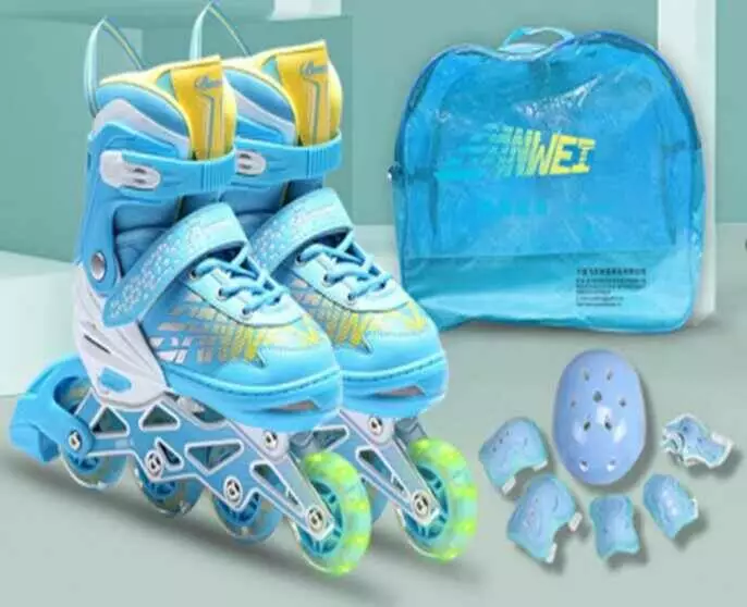 Ролики с захистом 6917-М розмір 35-38 (6) колір СИНІЙ, колеса PU, ПЕРЕДНЄ КОЛЕСО СВІТЛО, d колес – 6.5 см, в сумці