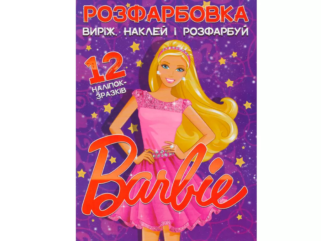 Розфарбовка для малюків "Виріж, наклей і розфарбуй" +12 наліпок Барбі