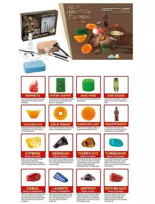 Розкопки 129-20 (24), інструменти, окуляри, 2 брикети, мінерали й прикраси, в коробці