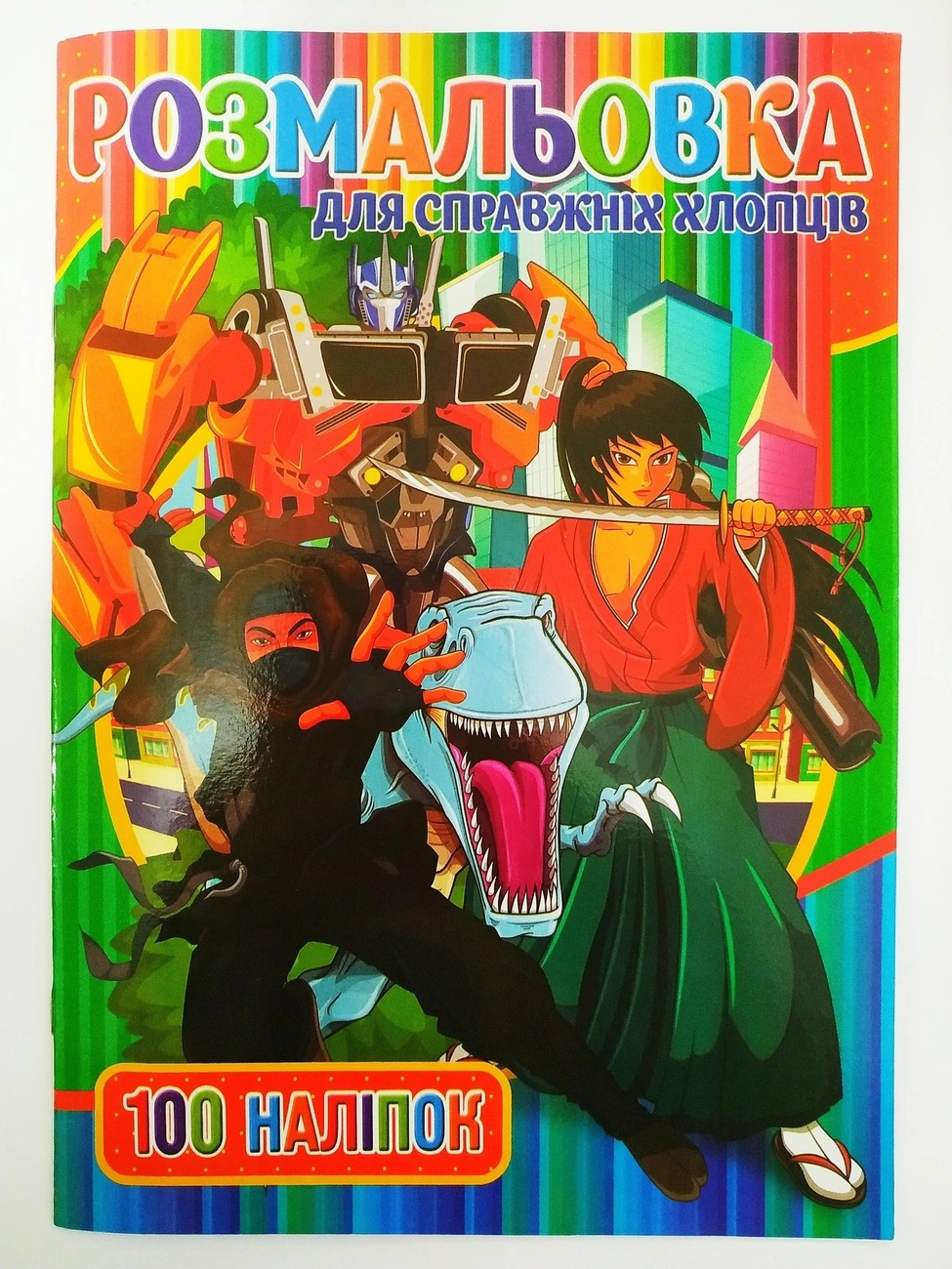 Розмальовка 100 наліпок А4: Для хлопчиків (у)
