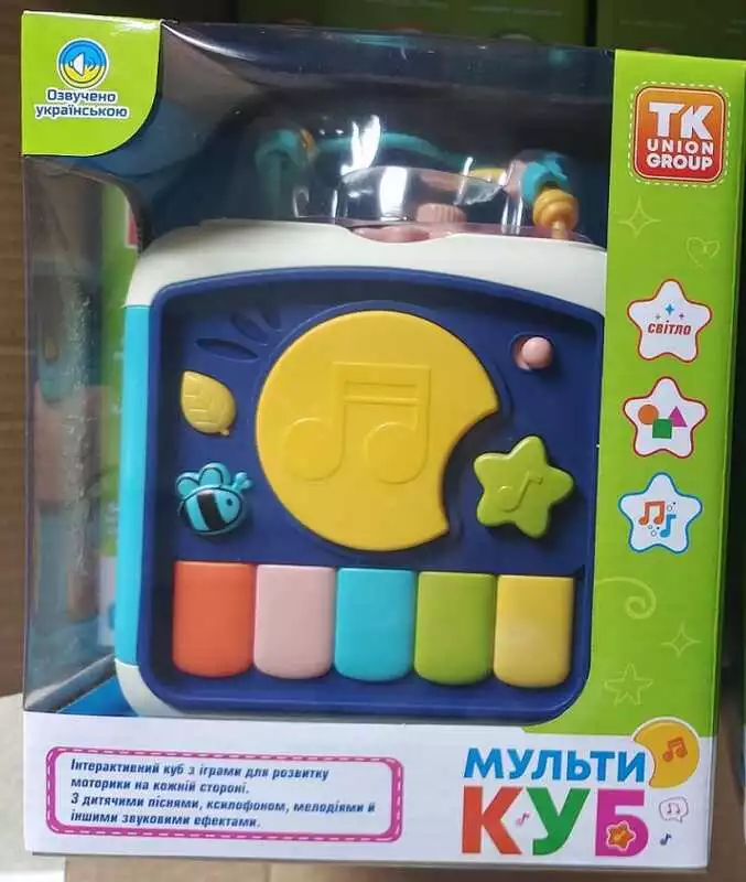 Розвивальний куб 27109 (18) ""TK Group"", ОЗВУЧУВАННЯ УКРАЇНСЬКОЮ МОВОЮ, пісні, казка, цифри, ксилофон, світло, в коробці