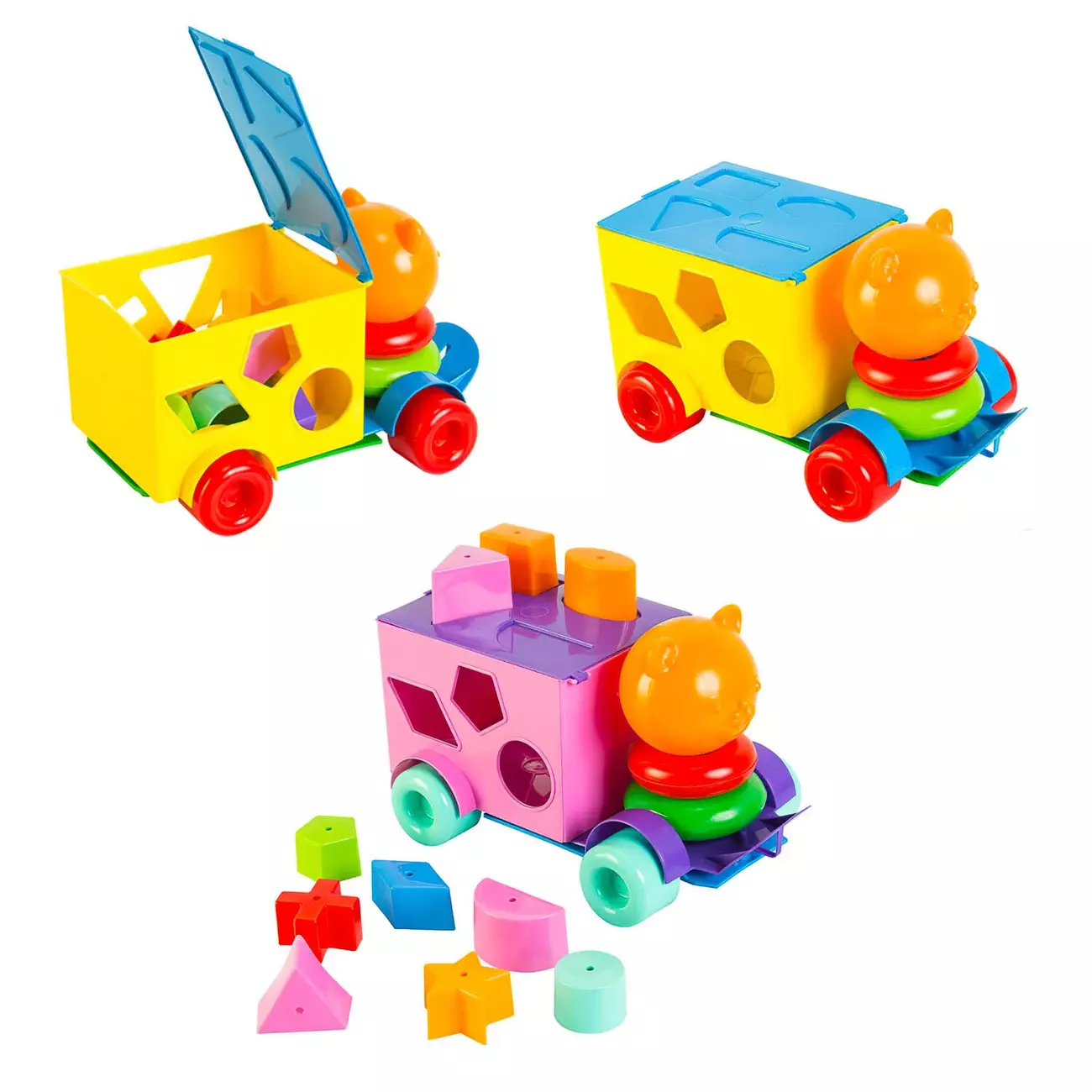 Розвиваюча машинка-сортер Тигреня поєднує в собі зручну машинку, симпатичну іграшку-пірамідку і корисний сортер. Кабінка іграшкової машинки створена у вигляді яскравої пірамідки з головою милого тигреня, грати з яким маляті буде весело і цікаво. Зручна петелька для шнурка дозволяє возити машинку за собою. Кузов виконаний у вигляді коробочки з фігурними отворами, в які потрібно проштовхувати фігурки відповідної форми. 10 різнокольорових фігурок різної форми йдуть в комплекті. У бічних стінках коробочки розташовано 6 фігурних отворів. Кришка коробочки відкривається, що дозволяє витягувати фігурки назад. Крім того, на кришці коробочки розташовані 4 фігурні виїмки, на які можна встановлювати фігурки. Розвиваюча машинка-сортер дуже корисна для дитини. Підбираючи фігурки під отвори та виїмки, маля вивчає форми та кольори, вчиться порівнювати та аналізувати, розвиває логіку і пам'ять, окомір, спритність, дрібну моторику і координацію рухів.