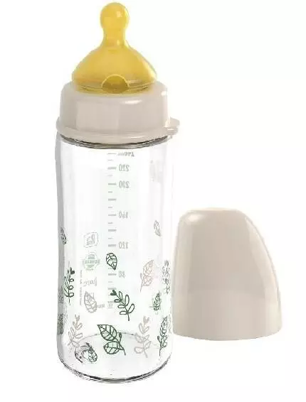 РР пляшка 260 мл.(Бежевий) з широкою горловиною"Вишенька-Зелена Серія" (латекс) 0+ M/ NIP