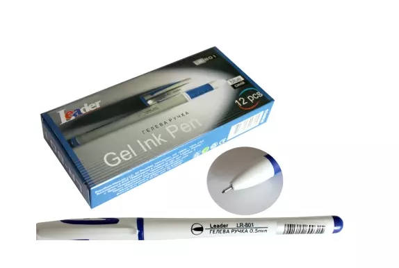 Ручка гелева, 0,5мм, синя, LR-801, LEADER
