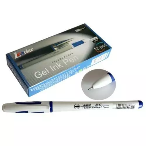 Ручка гелева, 0,5мм, синя, LR-801, LEADER