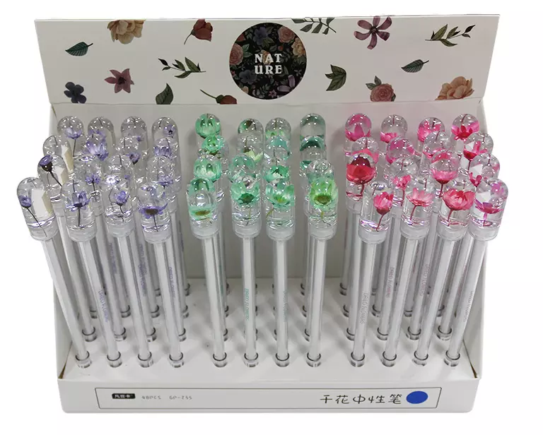 Ручка гелева, синя, Квіти декор, GP-255/3012, Імп