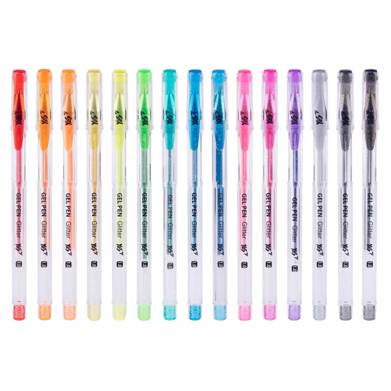Ручка гелева YES "Glitter" 15 кол, 30 шт/тубус